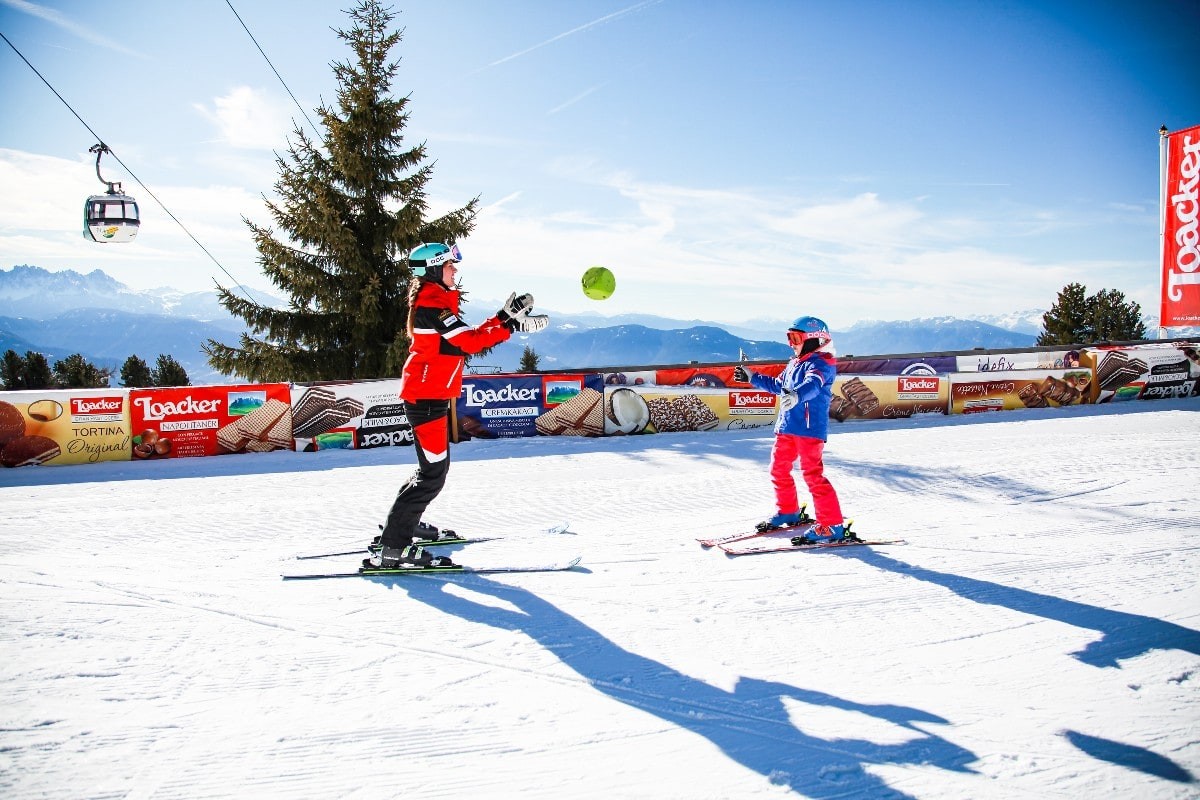 Not far from the mid station of the gondola lays the practice area of the Ski School Ritten - the perfect place for beginners to playfully learn how to ski. Thanks to the numerous offered kids’ courses and this perfect area the Ski School Rittner Horn is one of South Tyrol’s accredited child-friendly ski schools.