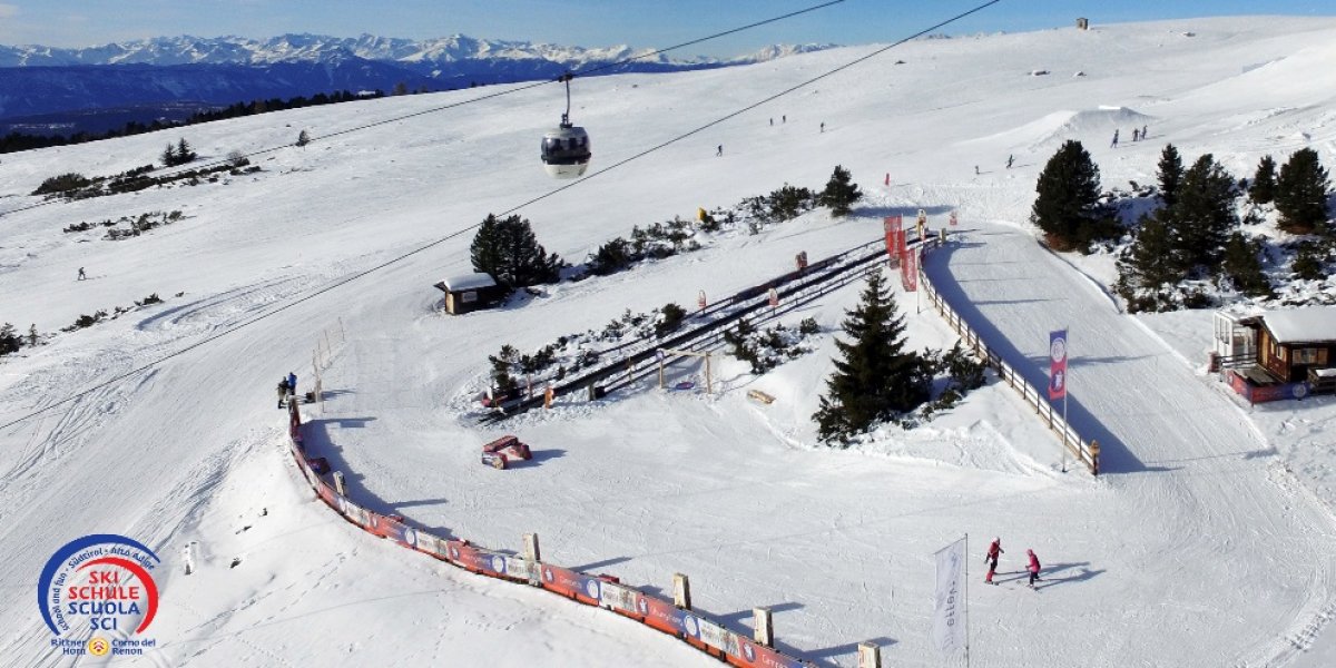 Not far from the mid station of the gondola lays the practice area of the Ski School Ritten - the perfect place for beginners to playfully learn how to ski. Thanks to the numerous offered kids’ courses and this perfect area the Ski School Rittner Horn is one of South Tyrol’s accredited child-friendly ski schools.
